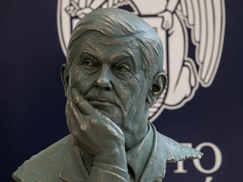 - Dokładnie rok temu w Centrum Sztuki Współczesnej w Toruniu mieliśmy okazję zobaczyć projekt gipsowy dzieła Pana Macieja Jagodzińskiego-Jagenmeera i jego żony Anety mówił Honorowy Obywatel Torunia, Jan Wyrowiński. – Minął rok, dziś mamy 101. rocznicę urodzin Zbigniewa Herberta, już nie jest gips tylko brąz i jest to wyjątkowo piękne popiersie tego poety. Cezary Dobies, który jest autorem opracowania pobytu Herberta w Toruniu w rozmowie z Grzegorzem Giedrysem w 2007 roku powiedział tak: Rainer Maria Rilke był w So,pocie przez dwa dni i do dziś dnia miasto przypomina o tym fakcie na wszelkie sposoby. Zbigniew Herbert przebywał w Toruniu ponad trzy lata. Nie dość, że zdobył tutaj tytuł magistra prawa, ale poznał chyba jedną z najważniejszych osób w swoim życiu, czyli profesora filozofii Henryka Elzenberga i uwrażliwił się na sztukę i na filozofię. I z tego tytułu Toruń powinien pamiętać o poecie, który jest porównywalny z Rainerem Marią Rilke na wszelkie możliwe sposoby. Jednym z tych sposobów jest to, co jest prezentem Pana Macieja i jego żony dla miasta, bowiem projekt wykonali w uznaniu dla wielkości Herberta i podarowali go miastu. Zapłacono tylko za odlew z brązu. To jest wspaniały prezent i miasto, Panie Prezydencie, rozumiem, że przyjmuje go z ogromną wdzięcznością i nigdy artystom tego nie zapomni. To, co się wydarzy w Światowy Dzień Poezji w marcu 2026 roku będzie ukoronowaniem tego całego procesu.