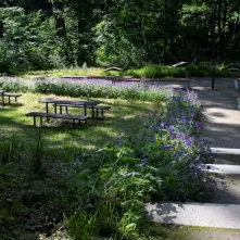 - powierzchnia nasadzonych traw ozdobnych, trawników oraz łąk kwietnych: 624 m2