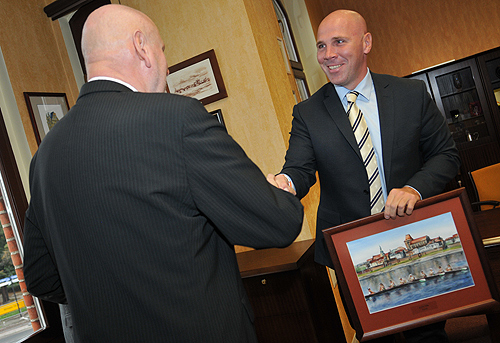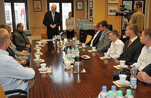 Młodzieżowi, brązowi medaliści świata w wioślarstwie spotkali się 26 września 2013 r. z prezydentem Torunia Michałem Zaleskim.