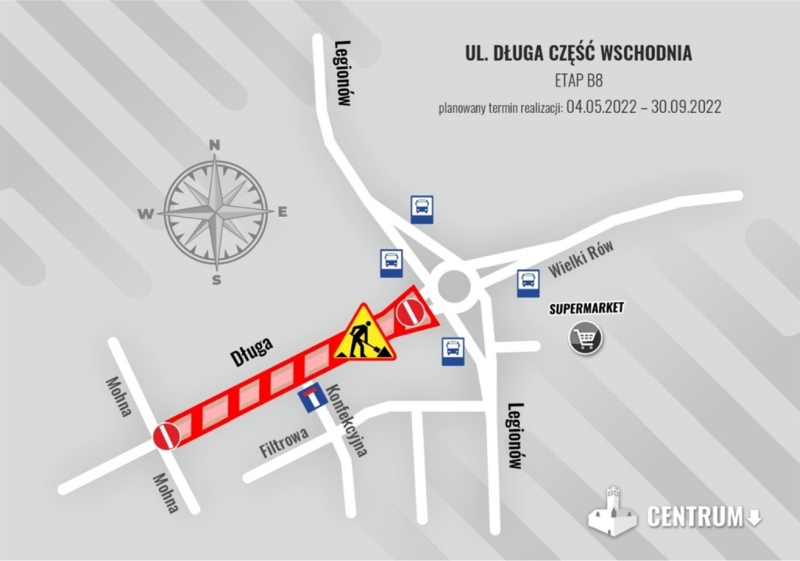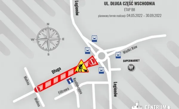 Następne zmiany w organizacji ruchu drogowego planowane są od 4 maja br. Wówczas wykonawca przejdzie z zasadniczymi pracami drogowymi na odcinek ul. Długiej od Mohna do ronda Czadcy. Planowane zamknięcie tego fragmentu potrwa do 30 września 2022 r. W tym czasie możliwy będzie tylko dojazd do posesji. Ruch poprowadzony zostanie objazdem: Trasą Prezydenta Raczkiewicza oraz Polną.