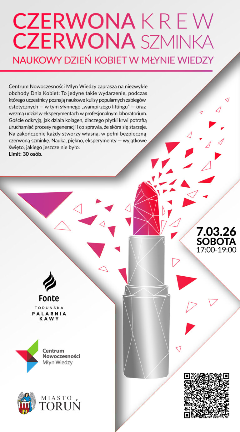 Toruńska Noc Naukowców 2024 odbędzie się 27 września 2024 r. w budynku głównym Centrum Nowoczesności Młyn Wiedzy (MW1) oraz Centrum Innowacyjnej Edukacji (MW2) między godz. 16:00 a 22:00.