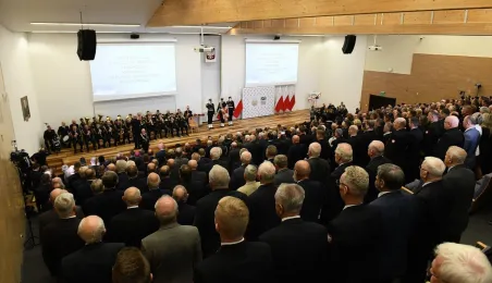 21 października 2022 r. w Gdyni odbyły się obchody 100. rocznicy powstania wyższego wojskowego szkolnictwa morskiego. Uroczystość w Akademii Marynarki Wojennej w Gdyni zgromadziła oficerów, podoficerów, marynarzy i podchorążych tej szkoły na czele z rektorem komendantem kontradmirałem prof. dr. hab. Tomaszem Szubrychtem. Obecni byli prezydent RP Andrzej Duda i minister obrony narodowej Mariusz Błaszczak. Toruń reprezentowali prezydent Torunia Michał Zaleski, dyrektorka Wydziału Promocji i Turystyki Ewa Banaszczuk-Kisiel i wiceprzewodnicząca Rady Miasta Dagmara Tuszyńska. Fot. Krzysztof Miłosz/AMW
