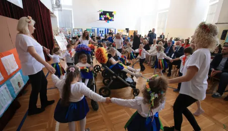 Przy Szkole Podstawowej nr 19 w Toruniu miasto chce wybudować basen rehabilitacyjny. Taką radosną informacje przekazał prezydent Torunia 10 maja 2023 r. podczas uroczystości z okazji 110-lecia istnienia placówki. Jubileuszowa uroczystość w siedzibie szkoły przy ul. Dziewulskiego 41 c, połączona z obchodami 8. Wojewódzkiego Dnia Godności Osoby Niepełnosprawnej Intelektualnie, zgromadziła liczne grono gości: przedstawicieli władz miasta i kuratorium, byłych i obecnych pracowników i uczniów placówki, rodziców oraz przyjaciół z toruńskiego środowiska osób niepełnosprawnych. Miasto reprezentowali prezydent Torunia Michał Zaleski, radni Rady Miasta: Krystyna Żejmo-Wysocka, Margareta Skerska-Roman i Bartosz Szymański oraz dyrektor Wydziału Edukacji Anna Łukaszewska. Fot. Sławomir Kowalski