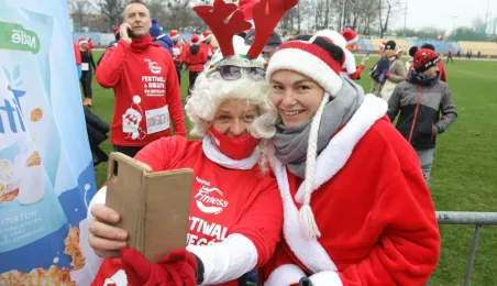 Ponad 1300 osób wzięło udział w 19. Festiwalu Biegów Świętego Mikołaja, który odbył się 5 grudnia 2021 roku. W 2021 roku biegacze wystartowali na trasach półmaratonu, 10 km i 5 km. Pięciokilometrową trasę pokonywali także zawodnicy nordic walking. Fot. Adam Zakrzewski