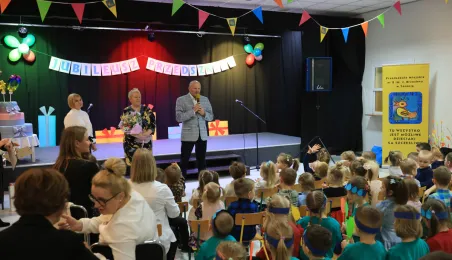 17 listopada 2023 r. odbył się jubileusz 40-lecia istnienia Przedszkola Miejskiego nr 2 im. Jana Brzechwy. W uroczystości udział wzięli zastępca prezydenta Adrian Mól i zastępczyni dyrektorki Wydziału Edukacji Katarzyna Nowicka-Skuza. Fot. Sławomir Kowalski