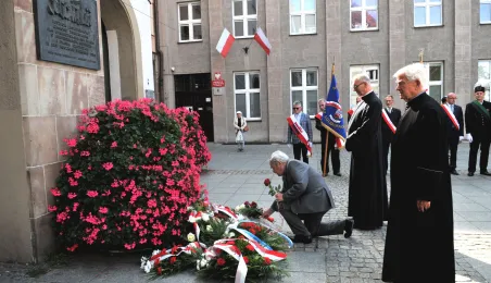 Związkowcy z Torunia, Inowrocławia i Grudziądza uczestniczyli w Toruniu 4 września 2022 r. w uroczystościach z okazji 42. rocznicy podpisania Porozumień Sierpniowych i powstania Niezależnego Samorządnego Związku Zawodowego "Solidarność". Samorząd toruński reprezentował zastępca prezydenta Paweł Gulewski. Fot. Małgorzata Litwin