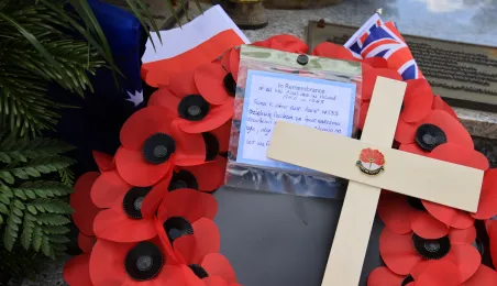 W 78. rocznicę zakończenia II wojny światowej, 8 maja 2023 r., przedstawiciele władz miasta złożyli wiązanki kwiatów w miejscach upamiętniających ofiary światowego konfliktu - pod pomnikiem Ofiar Hitleryzmu przy alei św. Jana Pawła II i pod tablicą na terenie dawnego obozu jenieckiego na osiedlu Glinki. / fot. Sławomir Kowalski