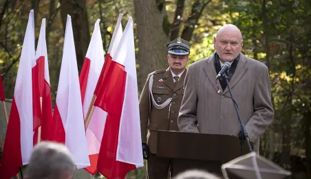 W Miejscu Pamięci Narodowej na Barbarce 24 października 2021 r. torunianie oddali hołd mieszkańcom Torunia pomordowanym przez hitlerowców po wybuchu wojny. Uroczystość zgromadziła Rodziny Ofiar Barbarki, parlamentarzystów, kombatantów, samorządowców z Torunia i powiatu, duchownych, harcerzy i wojsko. Oprawę muzyczną uroczystości zapewniła orkiestra Garnizonu Toruń. Fot. Wojtek Szabelski