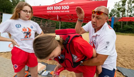 13 lipca 2023 r. na basenach letnich przy ul. Kujawskiej odbył się pierwszy pokaz ratownictwa wodnego pn. "Bezpieczne wakacje nad wodą". Pokazy będą odbywać się cyklicznie przez całe wakacje na wszystkich toruńskich basenach letnich. Fot. Agnieszka Bielecka