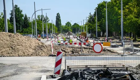 Zaawansowanie prac na budowie nowej linii Tramwajowej zbliża się do 50 procent. Prace toczą się równolegle na kilkunastu odcinkach. W kilku miejscach widać już niemal gotowe torowisko.