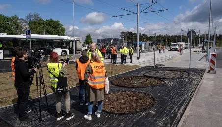 Dobiega końca budowa nowej linii tramwajowej z centrum do północnej części Torunia, która będzie przebiegać z centrum Szosą Chełmińską, ul. Długą, Legionów, Polną, Ugory i Watzenrodego aż pętli przy ul. Heweliusza. Zadanie obejmuje budowę i przebudowę torowiska i układu drogowego oraz infrastruktury podziemnej, 27 platform przystankowych, chodników i dróg rowerowych, a także kompleksowe zagospodarowanie zieleni. Inwestycja jest realizowana w ramach projektu „Poprawa funkcjonowania komunikacji miejskiej w Toruniu – BiT-City II” o wartości ponad 461,5 mln zł, z dofinansowaniem unijnym 261 mln zł (71,33%) z Programu Operacyjnego Infrastruktura i Środowisko na lata 2014-2020. Fot. Wojtek Szabelski