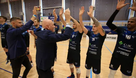 Po dwóch wyjazdowych zwycięstwach siatkarze CUK Aniołów zaprosili kibiców na pierwszy mecz w Toruniu. Przed własną publicznością 3:1 w setach pokonali zespół z Sieradza. Fot. Sławomir Kowalski
