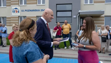 Pierwszych kilka rodzin otrzymało klucze od prezydenta Torunia Michała Zaleskiego do mieszkań w nowo powstałym budynku mieszkalnym przy ul. Poznanskiej 294 c, gdzie inwestorem jest spółka miejska Toruńskie Towarzystwo Budownictwa Społecznego. - Mam nadzieję, że to miejsce będzie dla Państwa dobrym toruńskim domem - powiedział prezydent Michał Zaleski. Fot. Wojtek Szabelski