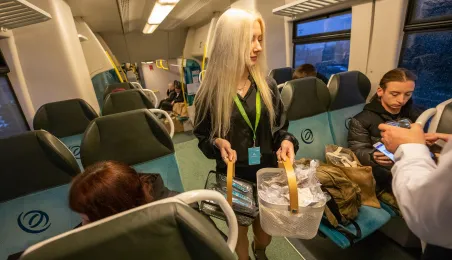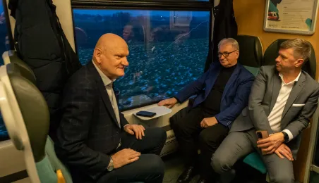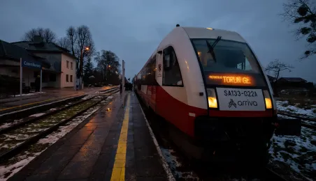 Na trasie Toruń Główny – Czernikowo kursować będzie dodatkowy pociąg. Stało się to możliwe dzięki porozumieniu samorządu województwa z gminami powiatu toruńskiego, w tym miastem Toruń, które będą wspófinansować kurs. Pierwszy, uroczysty przejazd dodatkowego pociągu odbył się wczesnym rankiem w poniedziałek 11 grudnia 2023 r. Fot. Agnieszka Bielecka