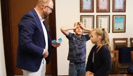 19 czerwca 2024 r. u prezydenta Torunia Pawła Gulewskiego gościła grupa dzieci ze Szkoły Podstawowej nr 31 w Toruniu wraz z panią dyrektor Anną Barwik. To placówka edukacyjna z oddziałami integracyjnymi, w których uczą się m.in. dzieci ze spektrum autyzmu i zespołem Aspergera. Fot. Małgorzata Litwin