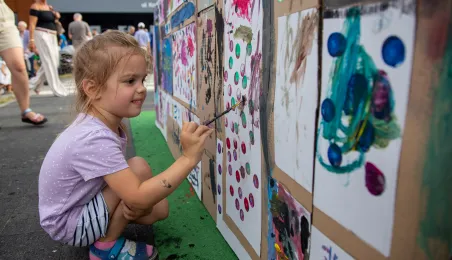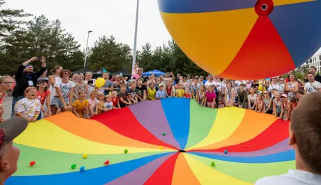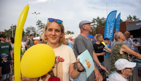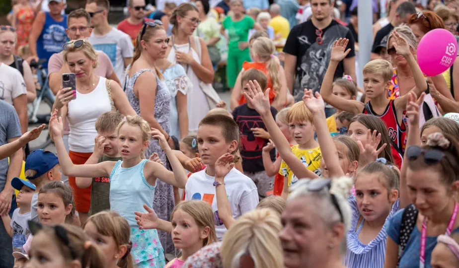 25 sierpnia 2023 r. mieszkańcy Torunia udali się nową linią tramwajową na osiedle w północnej części miasta, gdzie odbył się festyn pn. BiT City - na zakończenie inwestycji. Jednym z punktów programu było wręczenie nagród dzieciom, które zostały wyróżnione w konkursie plastycznym. Fot. Agnieszka Bielecka