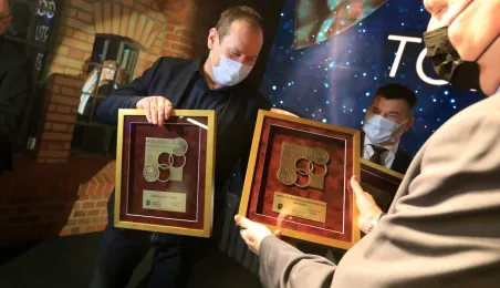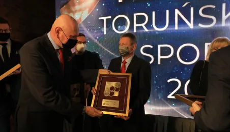 VIII Gala Mecenasa Toruńskiego Sportu odbyła się w piątkowy wieczór 14 stycznia 2022 r. w MCSM. Z rąk prezydenta Torunia Michała Zaleskiego i przewodniczącego Rady Miasta Torunia Marcina Czyżniewskiego pamiątkowe medale otrzymało 78 laureatów - osoby i firmy, które w szczególny sposób angażują swoje środki finansowe oraz udzielają bezinteresownej pomocy zawodnikom toruńskich klubów sportowych. Fot. Sławomir Kowalski