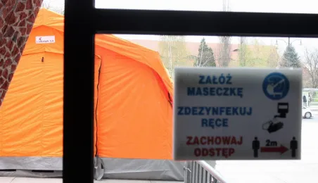 Dwa namioty przed CKK Jordanki oraz gotowe stanowiska we foyer budynku - mobilny punkt szczepień jest już gotowy. Szczepienia w ramach akcji "Zaszczep się w majówkę" będą odbywać się tam w dniach 1-4 maja 2021 r. Fot. Adam Zakrzewski