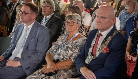 W ramach 43. Międzynarodowego zjazdu Miast Nowej Hanzy do Torunia przybyli goście z 11 krajów. Uroczyste powitanie odbyło 22 czerwca 2023 r. się w Ratuszu Staromiejskim.