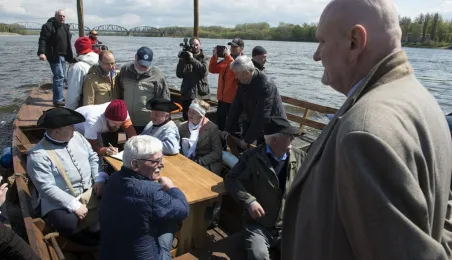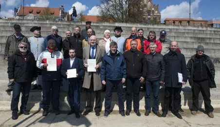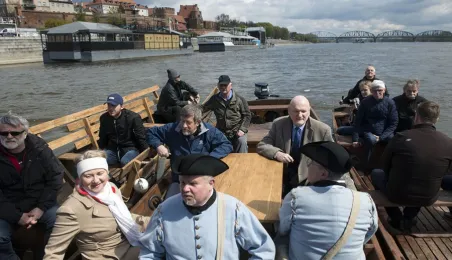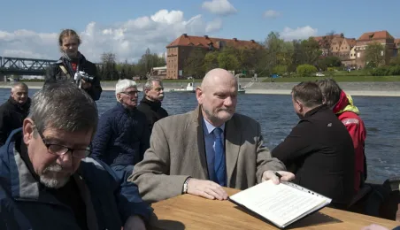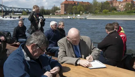 Wspólny spływ łodziami i podpisanie porozumienia o współpracy dla dobra Wisły przez przedstawicieli toruńskiego samorządu oraz organizacji i przedsiebiorstw działających na Wiśle były pierwszym punktem programu zainaugurowanego w Toruniu 29 kwietnia 2017 r. I Toruńskiego Forum Wiślanego. Fot. Wojtek Szabelski