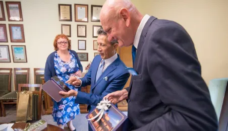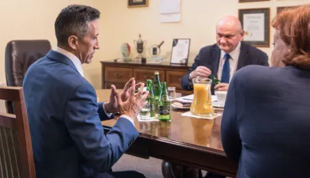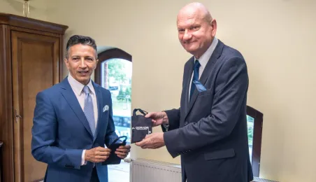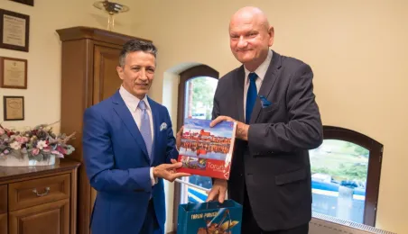 Z okazji Welconomy Forum Toruń odwiedził JE Ambasador Republiki Kolumbii w RP Javier Darío Higuera Angel. W dniu 22 czerwca 2021 r. złożył także w Urzędzie Miasta Torunia, gdzie spotkał się z prezydentem Michałem Zaleskim oraz przedstawicielkami Wydziału Promocji i Turystyki. Fot. Lech Kamiński