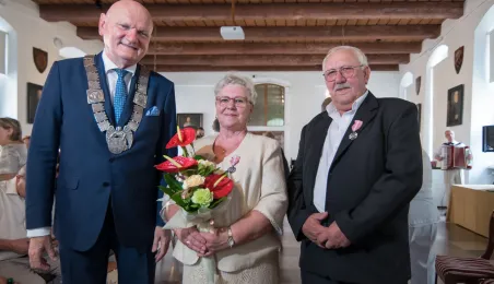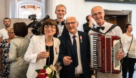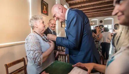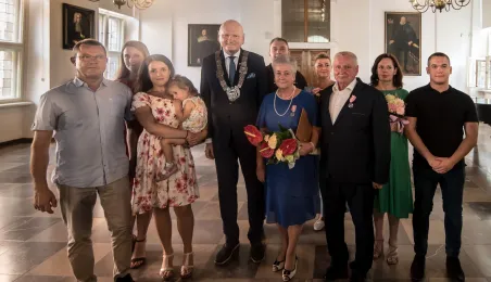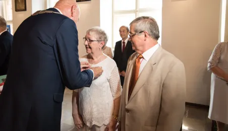20 par małżeńskich odebrało 19 sierpnia 2022 r. Medale za Długoletnie Pożycie Małżeńskie. Odznaczenia wręczył prezydent Torunia podczas uroczystości w Ratuszu Staromiejskim. Ponieważ grupa małżonków oczekujących na wręczenie odznaczeń była duża, odbyły się dwie uroczystości – o godz. 14:00 i 15:30, obie w zabytkowej Sali Mieszczańskiej. Fot. Lech Kamiński