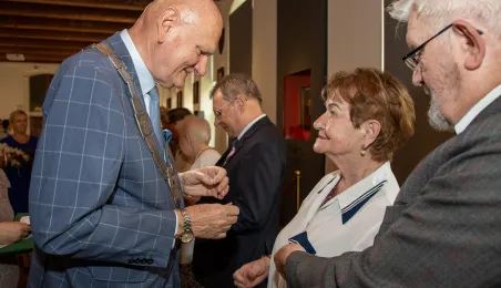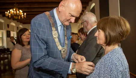 20 czerwca 2023 r. w Ratuszu Staromiejskim prezydent Michał Zaleski wręczył medale za długoletnie pożycie małżeńskie 10 parom torunian. Fot. Agnieszka Bielecka