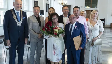 21 par małżeńskich odebrało Medale za Długoletnie Pożycie Małżeńskie. Odznaczenia wręczył prezydent Torunia Michał Zaleski podczas uroczystości w Ratuszu Staromiejskim w dniu 3 sierpnia 2021 r. Fot. Wojtek Szabelski