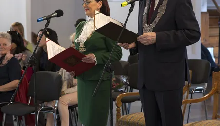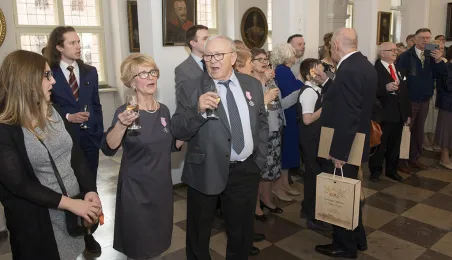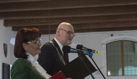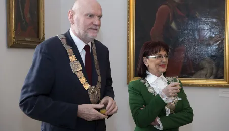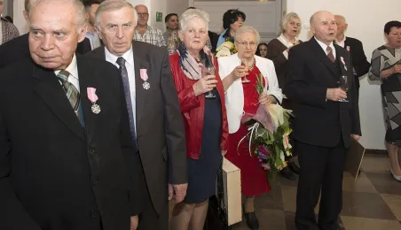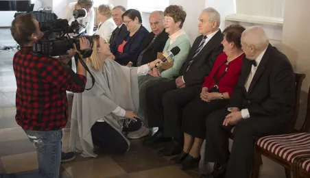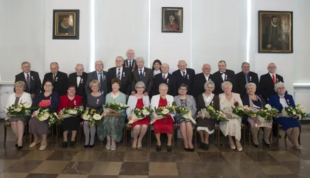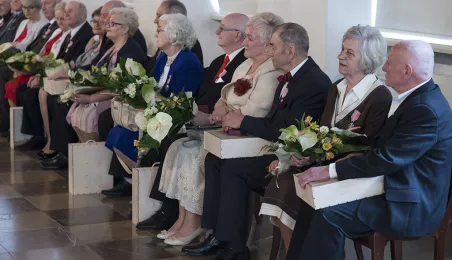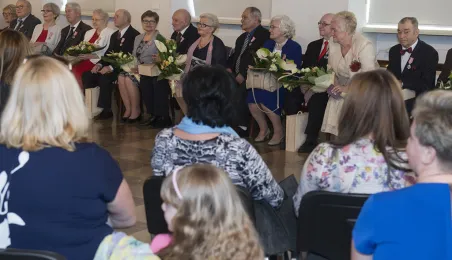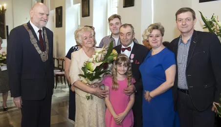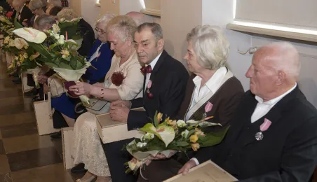 W Ratuszu Staromiejskim w Toruniu dwanaście par małżeńskich świętowało 31 marca 2017 r. jubileusz co najmniej 50 lat wspólnego życia. Z tej okazji prezydent Torunia Michał Zaleski wręczył im Medale za Długoletnie Pożycie Małżeńskie. Fot. Wojtek Szabelski
