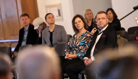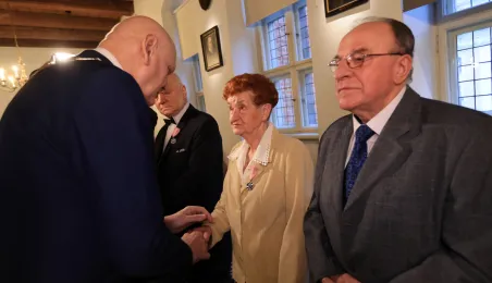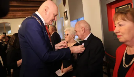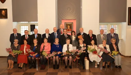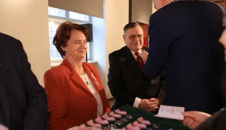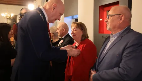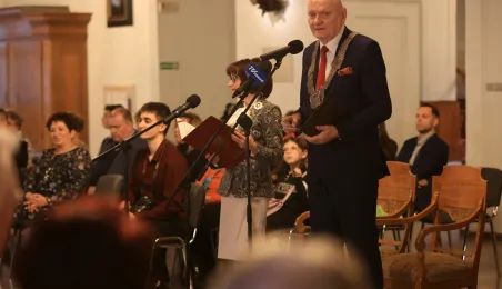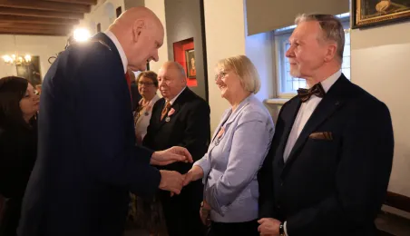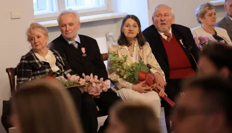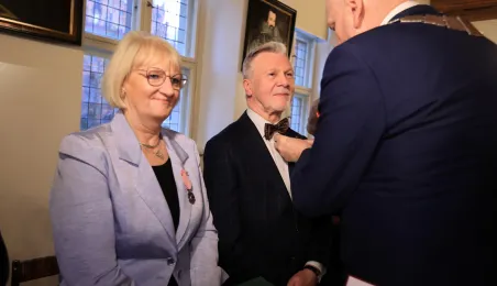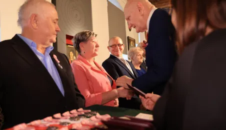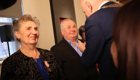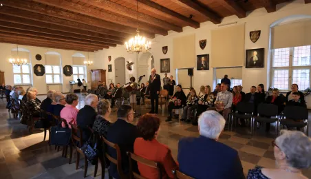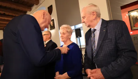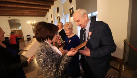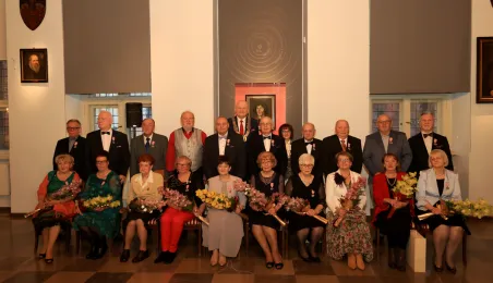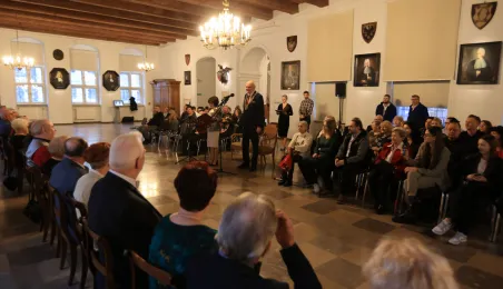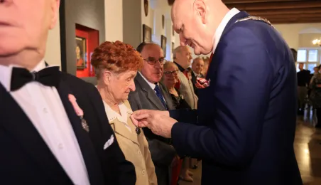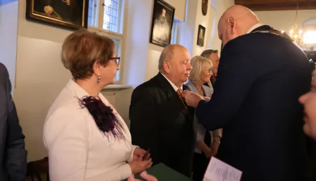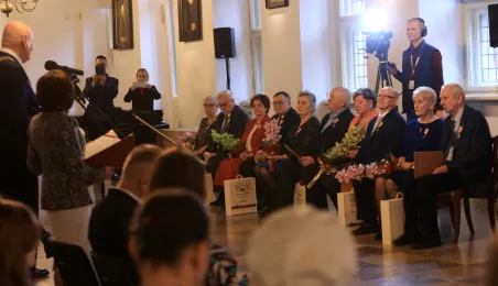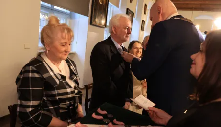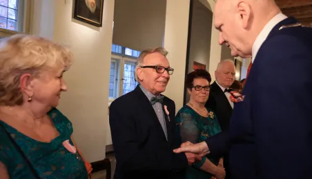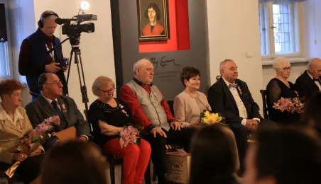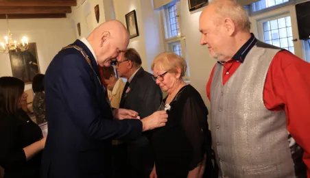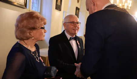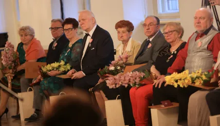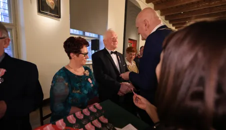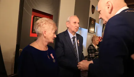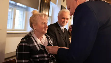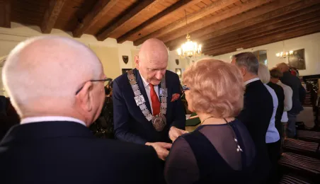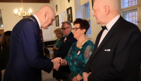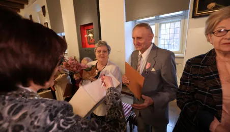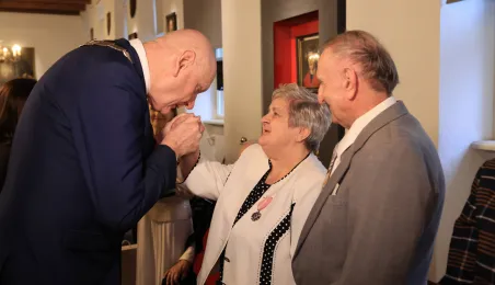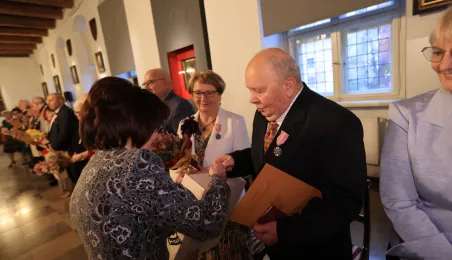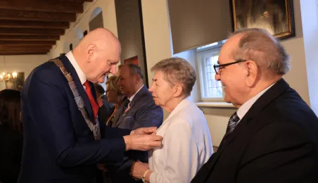 Kolejne toruńskie pary odebrały medale za długie pożycie małżeńskie. 9 lutego 2024 r. w Ratuszu Staromiejskim wręczył je Prezydent Torunia Michał Zaleski. / fot. Sławomir Kowalski