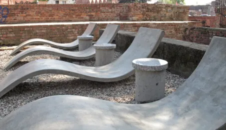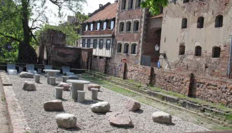Między ulicą Podmurną a Przedzamczem powstał niezwykły, kamienny ogród. Niegdyś plac zabaw, przez lata zdegradowany, na powrót bedzie pełnił funkcje rekreacyjne. Wykorzystując 50 tys. zł pozostałe z programu "Moje podwórko" miasto urządziło tam - po konsultacjach społecznych z mieszkańcami - teren z kamiennymi siedziskami, stolikami, minisceną i stołem do gry w szachy. Koncepcja została opracowana przez Miejską Pracownię Urbanistyczną, a prace nadzorował Miejski Konserwator Zabytków. Fot. Adam Zakrzewski