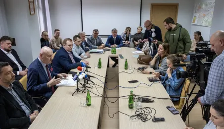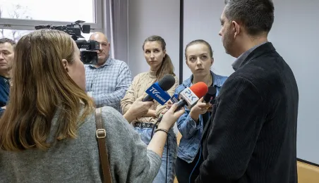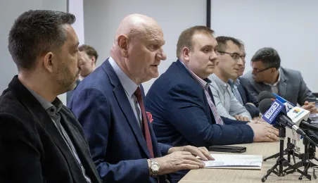 9 lutego 2024 r. odbędzie się portest rolników. W związku z tym w Toruniu i okolicy spodziewane sa utrudnienia w ruchu. O szczegółach na konferencji z organizatorami protestów mówił Prezydent Torunia Michał Zaleski. / fot. Wojtek Szabelski