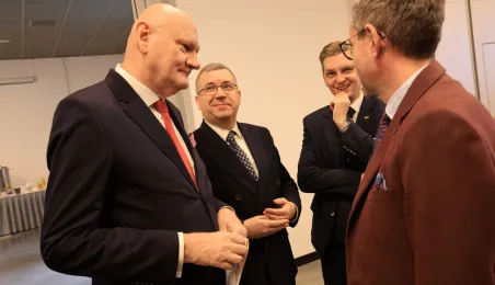 Prawne aspekty funkcjonowania samorządów były tematem konferencji samorządowej, jaka odbyła się 1 lutego 2023 r. w Centrum Innowacyjnej Edukacji. Gościem spotkania był minister ds. samorządu terytorialnego Włodzimierz Tomaszewski. Fot. Sławomir Kowalski