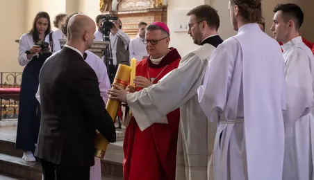 Konsekracja kościoła odbyła się w niedzielę 28 maja 2023 r. Ceremonii przewodniczył biskup Wiesław Śmigiel. W uroczystości wziął udział prezydent Torunia Michał Zaleski. Fot. Wojtek Szabelski