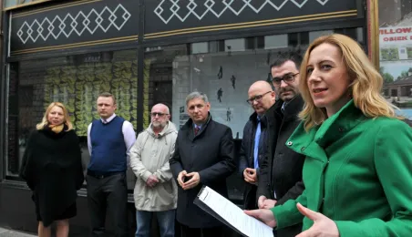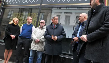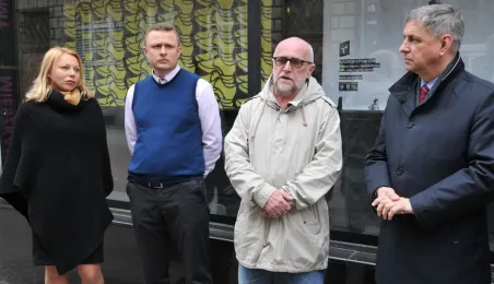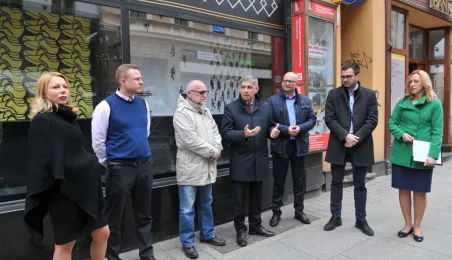 Witryny sklepu Żabka przy ul. Szerokiej 13/15 zmieniły się w plenerową galerię sztuki. Eksponowane są nich plakaty związane z aktualnymi wystawami w Centrum Sztuki Współczesnej. Projekt jest efektem współpracy sklepu z Biurem Toruńskiego Centrum Miasta, która zaowocowała własnie taka propozycją zagospodarowania pustych niekiedy okien wystawowych staromiejskich kamienic. Fot. Małgorzata Litwin