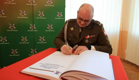 Odchodzący Komendant Garnizonu Toruń i Szef Sekcji Wychowawczej Centrum Szkolenia Artylerii i Uzbrojenia w Toruniu, major Ireneusz Bandura otrzymał najwyższe wyróżnienie, jakie prezydent miasta przyznaje osobom szczególnie zasłużonym. Zdj. Sławomir Kowalski