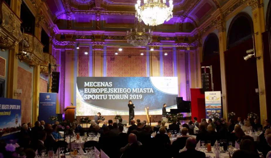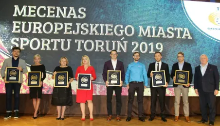 Aż 79 toruńskich firm i instytucji otrzymało zaszczytny tytuł Mecenasa Europejskiego Miasta Sportu Toruń 2019. Wyróżnienia wręczył Prezydent Miasta Torunia Michał Zaleski podczas gali w Dworze Artusa w dniu 22 października 2019 r. Fot. Adam Zakrzewski