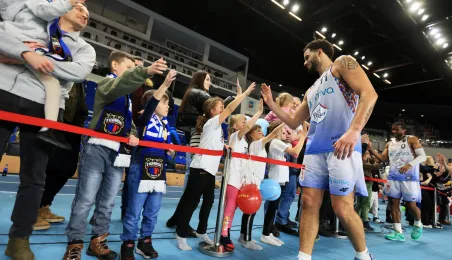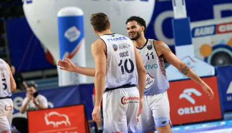W meczu koszykarskich drużyn Arriva Polski Cukier Toruń - MKS Start S.A. Lublin, który odbył się 4 stycznia 2024 r. w Arenie Toruń, torunianie zwyciężyli 98:84. Fot. Sławomir Kowalski