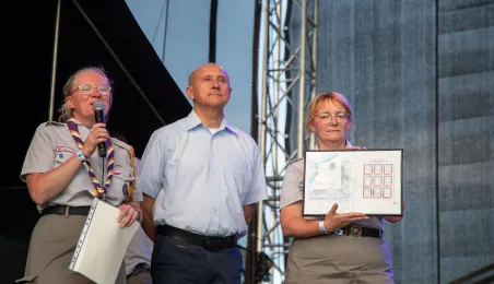 Międzynarodowy Zlot Harcerzy i Skautów „Wicek” odbywał się w Toruniu od 3 do 7 lipca 2024 r. na terenie Aeroklubu Pomorskiego. Tam też 6 lipca miało miejsce podsumowanie wydarzenia pn. "Wicek bez granic". Dla uczestników zlotu i mieszkanców wystapil zespół Kobranocka. Fot. © UMT 2024, autor: Agnieszka Bielecka, licencja: CC BY-NC 4.0