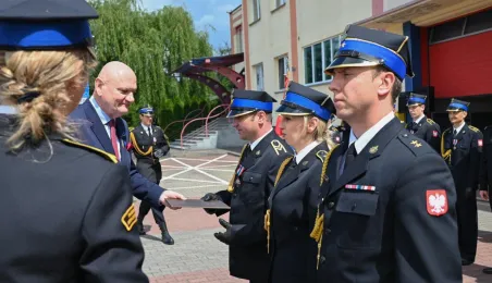 W dniu 31 maja 2022 r. przy siedzibie Komendy Miejskiej Państwowej Straży Pożarnej odbyły się miejskie obchody Dnia Strażaka, w których udział wziął prezydent Michał Zaleski. Fot. Lech Kamiński