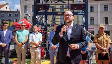 Na toruńskiej starówce rozpoczęły się w czwartek 27 czerwca 2024 r. zmagania strażaków w Mistrzostwach Polski i Europy o tytuł Najtwardszego Strażaka. Bierze w nich udział ponad 300 zawodników z całego świata: Polski, Czech, Estonii, Litwy, Niemiec, Francji, Słowacji, Wielkiej Brytanii, a nawet z Kanady. Strażacy startują w konkurencjach indywidualnych, w tandemach i w sztafetach. Gościem inauguracji wydarzenia był prezydent Torunia Paweł Gulewski. Fot. © UMT 2024, autor: Agnieszka Bielecka, licencja: CC BY-NC 4.0