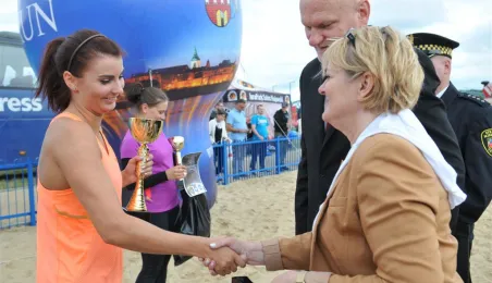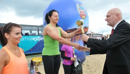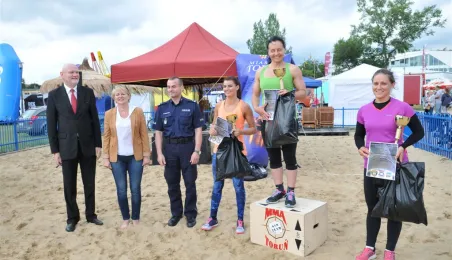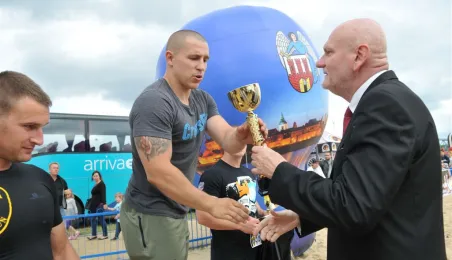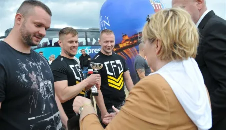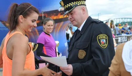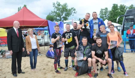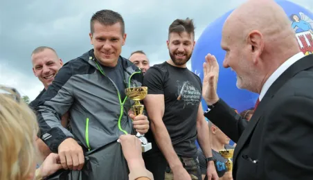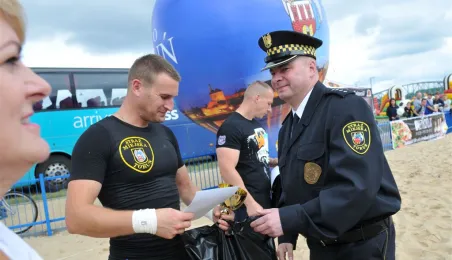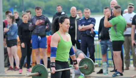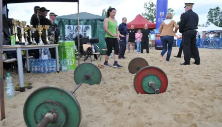 Toruńska policjantka sierż. szt. Marzena Grzelak najsilniejszą kobietą w mundurze w Polsce. A toruński strażnik miejski Michał Bator wicemistrzem Polski. 24 czerwca 2017 r. na Bulwarze Filadelfijskim w Toruniu po raz drugi zostały rozegrane Mistrzostwa Polski Służb Mundurowych w Wieloboju Siłowym. Fot. Małgorzata Litwin