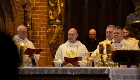 16 lutego 2023 roku w Katedrze śś. Janów w Toruniu odbyła się uroczysta msza święta w intencji ks. Sławomira Odera, który został mianowany biskupem diecezji gliwickiej. W nabożeństwie, któremu przewnodniczył biskup toruński Wiesław Śmigiel, wziął udział Prezydent Michał Zaleski oraz jego zastępcy - Zbigniew Fiderewicz i Adrian Mól. / fot. Paula Gałązka