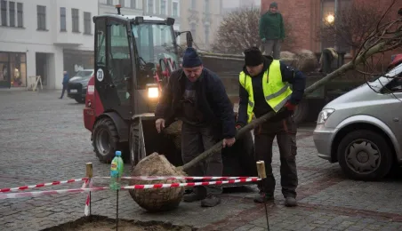 Na Rynku Nowomiejskim pojawiły się nowe drzewa. To sześć lip, które nasadzono w ramach Budżetu Obywatelskiego. / fot. Paula Gałązka