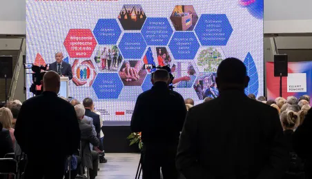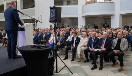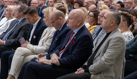4 października 2023 r. w Toruniu obraduje Forum Samorządowe Województwa Kujawsko-Pomorskiego. Prezydent Michał Zaleski odebrał symboliczny czek na blisko 85 mln euro dotacji dla Stowarzyszenia ZIT Toruń. Wśród gości znaleźli się m.in. marszałek Senatu Tomasz Grodzki, posłowie na Sejm: Iwona Michałek, Arkadiusz Myrcha, Władysław Kosiniak-Kamysz, a także senator Ryszard Bober. Fot. Wojtek Szabelski