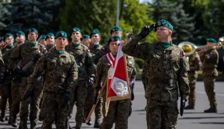 Zgodnie z ceremoniałem wojskowym i przy akompaniamencie Orkiestry Wojskowej z Torunia, w sobotę 29 lipca 2023 r. na placu apelowym Centrum Szkolenia Artylerii i Uzbrojenia w Toruniu przysięgę złożyło 54 ochotników projektu "Trenuj jak żołnierz". Fot. Agnieszka Bielecka