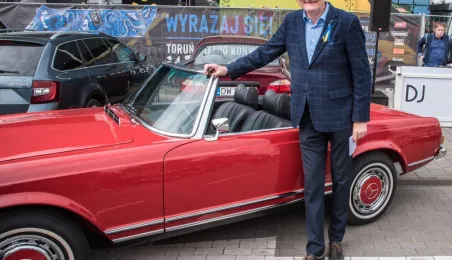 W dniach 14-15 maja 2022 r. w Toruniu odbywa się Ogólnopolski Zlot Mercedes-Benz. Uczestników przy hali Arena Toruń w dn. 14 maja 2022 r. powitał prezydent Michał Zaleski. Fot. Lech Kamiński