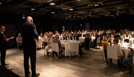 19 grudnia 2023 r. w Hotelu Bulwar odbył się tradycyjny Opłatek Maltański - spotkanie wigilijne dla ubogich rodzin wielodzietnych, osób samotnych i niepełnosprawnych. W wydarzeniu udział wziął prezydent Michał Zaleski. Fot. Agnieszka Bielecka