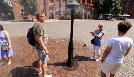 W związku z upałami, na terenie toruńskiej starówki zostały uruchomione kurtyny wodne. Zraszacze będą działały w gorące dni w godzinach 9:00-20:00.