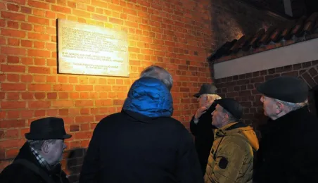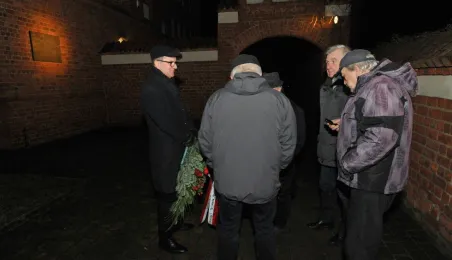 13 grudnia 2023 roku, w 42. rocznicę wybuchu stanu wojennego, przedstawiciele Społecznego Komitetu „Solidarni – Toruń Pamięta” zgromadzili się pod tablicą na budynku dawnego komisariatu milicji przy Wałach Gen. Sikorskiego 10, upamiętniającą działaczy opozycji walczących w okresie PRL-u z komunistyczną władzą. Toruński samorząd reprezentował sekretarz miasta Jacek Mularz. Fot. Małgorzata Litwin